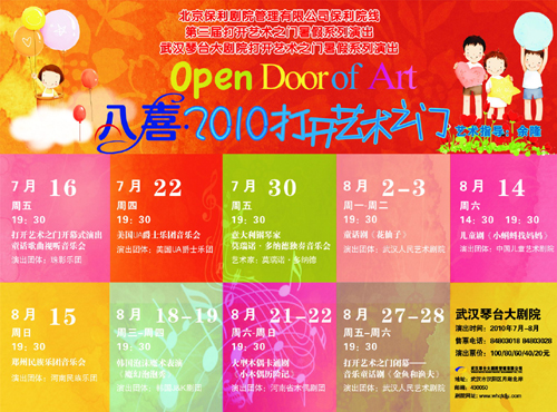湖北新闻网6月17日电 (周媛媛)暑期将至,一年一度的保利院线“打开艺术之门”系列演出又将闪亮登场啦!今年已是琴台大剧院承办的第三届“打开艺术之门”,将继续以“高水准、低价位”的宗旨面向青少年和广大艺术爱好者,普及、推广中国传统文化、民族艺术和古典音乐,奉献更多样的适合青少年的舞台剧目,为观众提供一个能够系统欣赏艺术的最佳机会。
