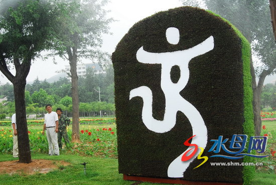 四组奥运题材的植物雕塑被工作人员安装到滨海路虞美人广场。 这是我市首次以北京奥运标志和竞技项目为主题的植物雕塑。 四组奥运题材的植物雕塑被工作人员安装到滨海路虞美人广场。 这是我市首次以北京奥运标志和竞技项目为主题的植物雕塑。