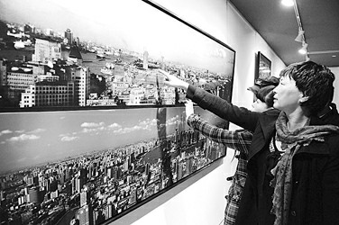 右图:观众在展出作品上辨认今昔陆家嘴。 谢震霖