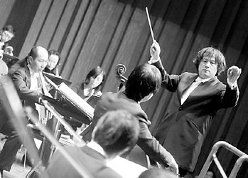 昨晚,汤沐海指挥上海爱乐乐团演出。 金昊 |